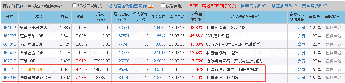 如图,2026年3月23日,油气ETF,LOF基金轮作,卖出高溢价基金501018,买入低溢价基金163208