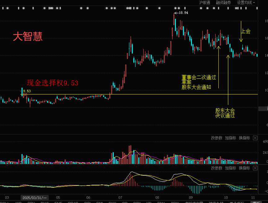 市场永远正确,市场的担忧非常合理,如果后市股价不站上现金选择权,失败的概率非常大,反之则会成功(因果请勿搞反)。类似的参考湘财股份吸并大智慧(下图)。