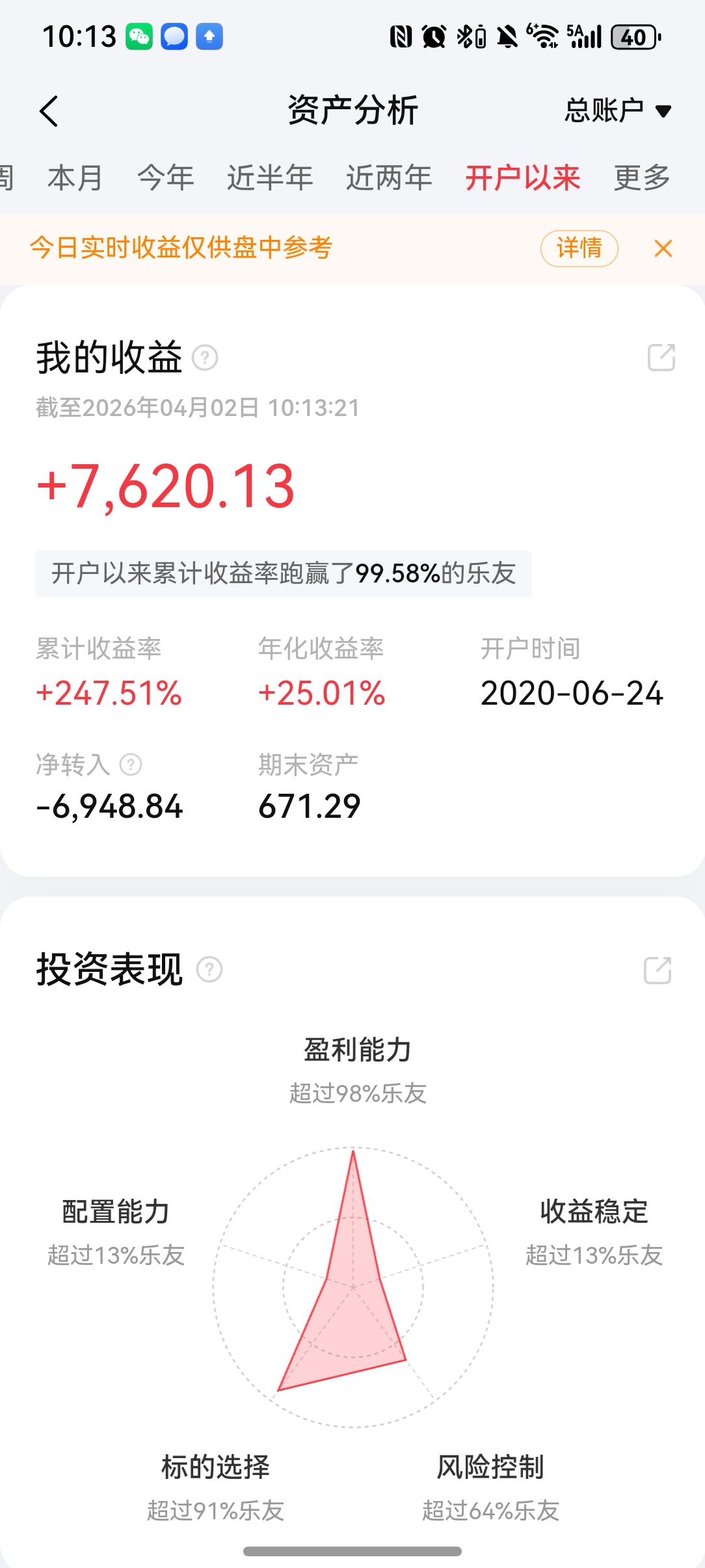 累计收益 +247.51%,年化 25.01%,跑赢 99.58% 投资者。