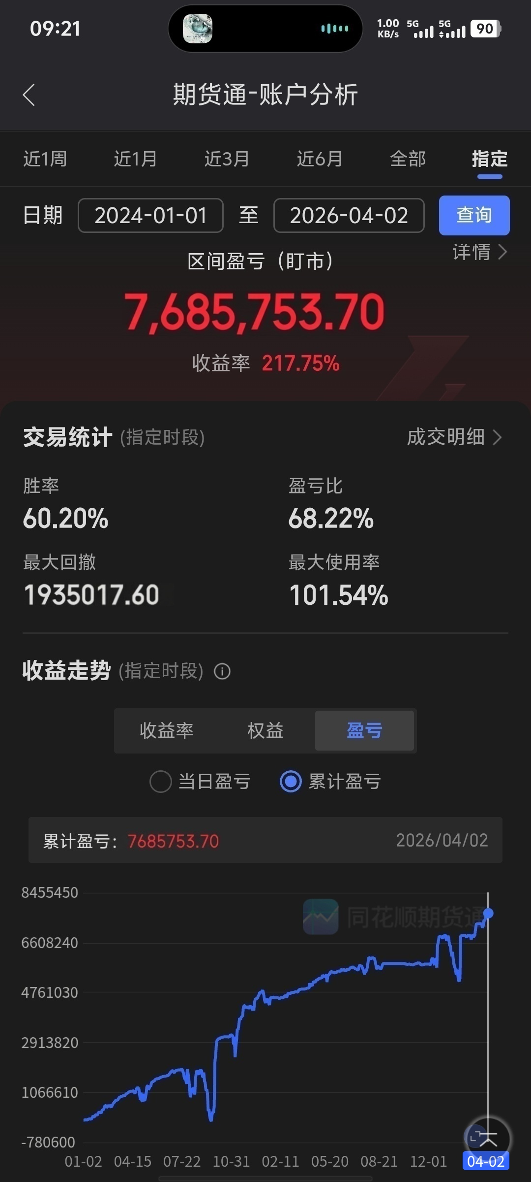 23年开始做期权期货,开始几个月小幅投入边学边做,各种策略都试了,经常左右打脸,24年开始只做对冲策略,不断总结改进,收益渐趋稳定,到现在只有两次暂时的大幅回撤,一个是924,另一个是今年年初IC和IM贴水大幅收窄导致,但由于是同品种对冲,相对极端偏离的价格维持不了几天,最终都是快速收回浮亏,按月交割日计算的话,收益暂无回撤。