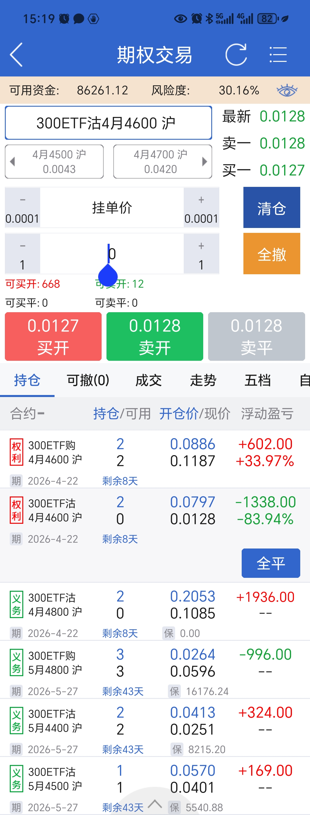 连续上涨,但因组合中有裸卖购,故收益略微限,稍遗憾。波动率还处低位,今日略有上升,要做好大涨升波的应对措施,保持警惕