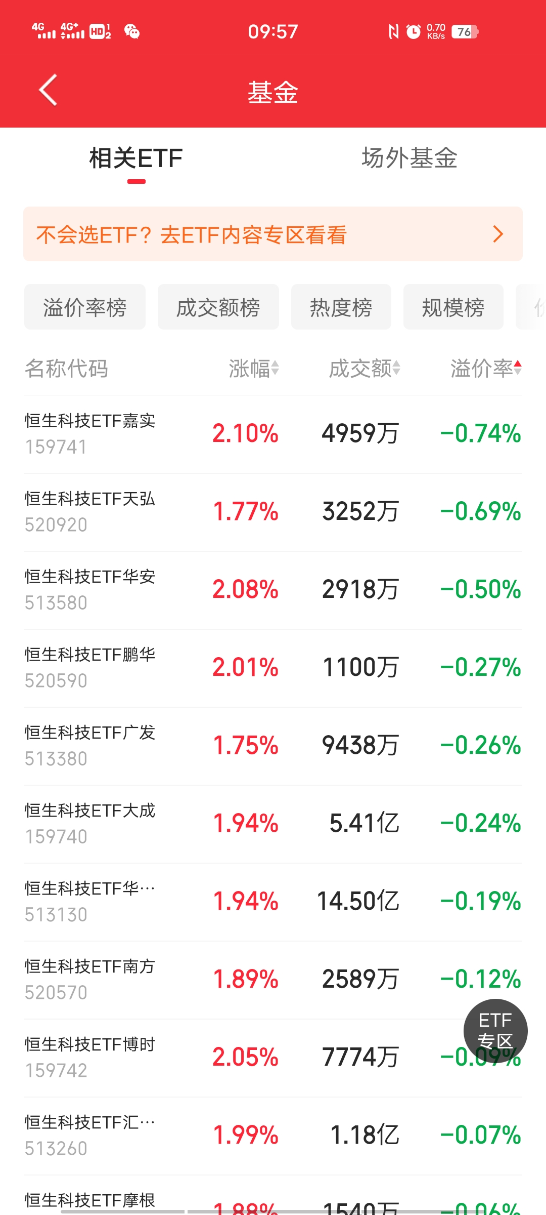 同花顺上恒生科技的相关etf都是折价的,请问这个准么