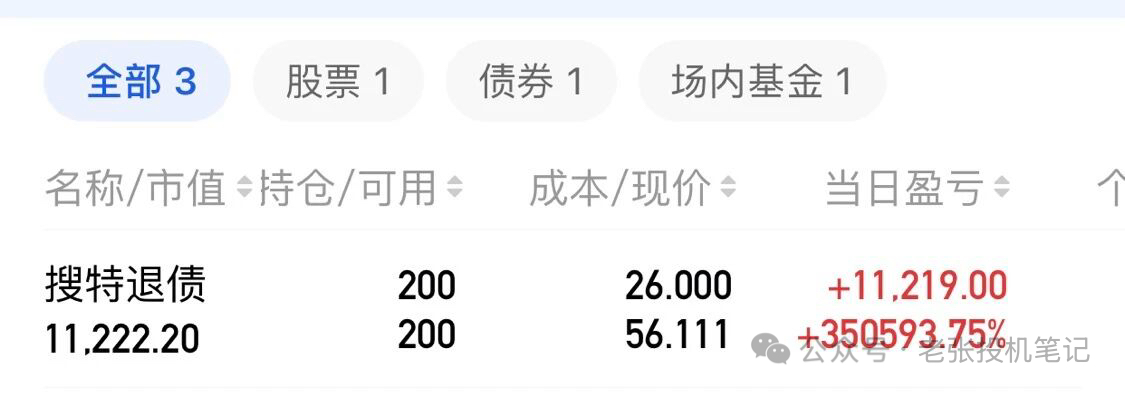 既然有一天腰斩,一天翻倍不稀罕,一天万倍的搜特退债才真是活久见,在下有幸亲身经历了。