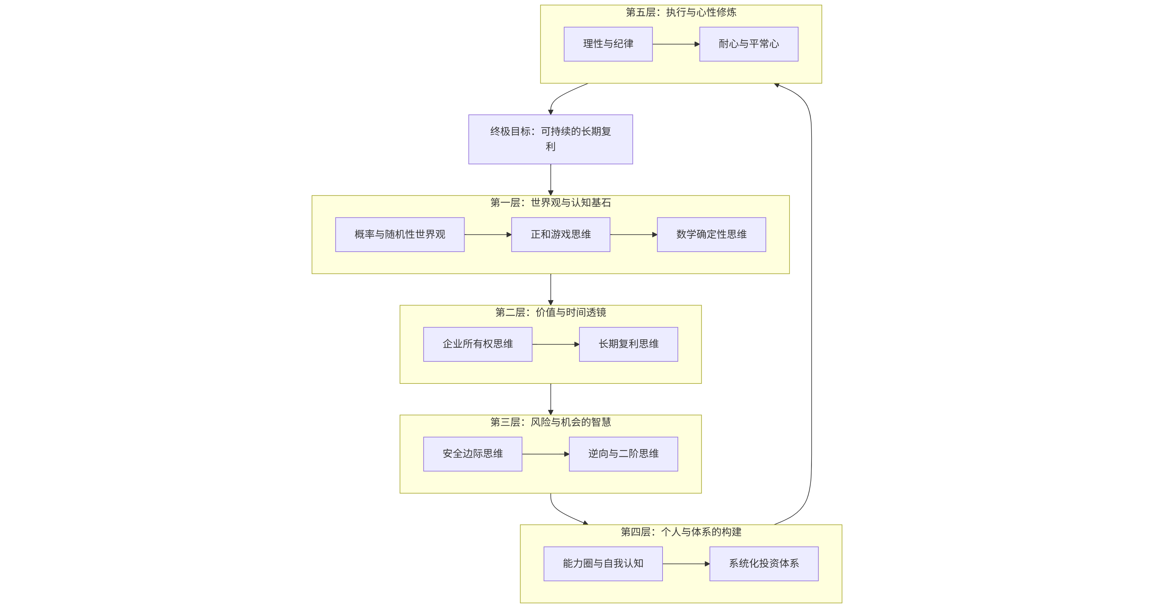 长期成功不依赖于一两次“神操作”,而依赖于一个逻辑自洽、可重复、能应对市场周期的完整体系。如集思录大V资水总结的框架:底层是自我认知,之上是投资哲学(如相信周期、价值回归),再上是科学思维方式,然后是战略原则(资产配置、风险管理),最上层才是具体的战术套路。