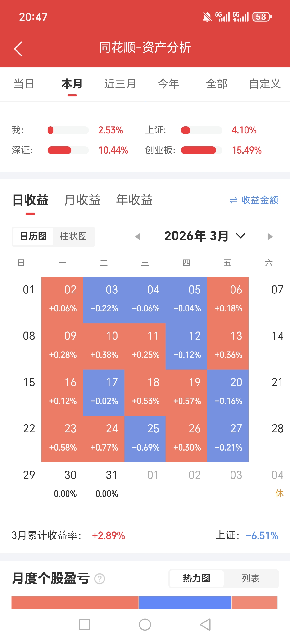 第五阶段:2026年3月初,在对自己投资策略反思后,卖出计划长期持有的巨化和南瑞,3月5日-18日小仓位试水日内t0交易、超短交易,标的为各类t0资产,经试运行和大量回测后,3月19日将几乎全部资金转入该策略,运行月余,自我感觉良好,3月5日至今按周无回撤,最长连续回撤天数为3天,如无意外,会将该策略执行到底,直至失效。