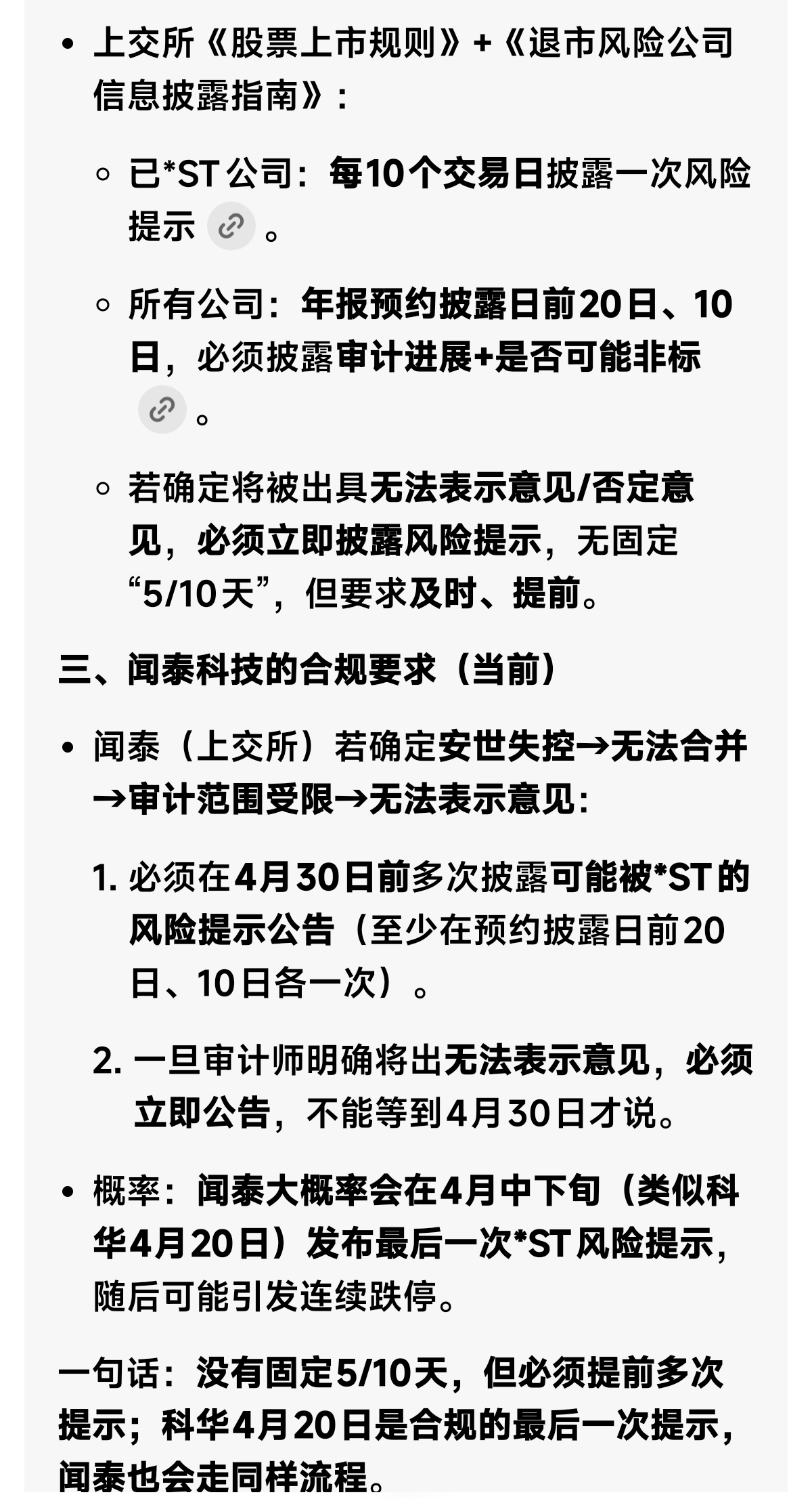 简单记:只要 2025 年报审计意见不是 “标准无保留”,*闻泰就会变成 ST 闻泰,股票涨跌幅限制变为 ±5%。