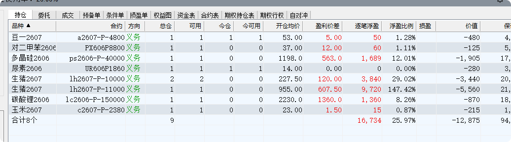 主要还是卖出期权为主,为了风险,大部分的时候虚1卖出,有机会的时候,也会做期权的权利方